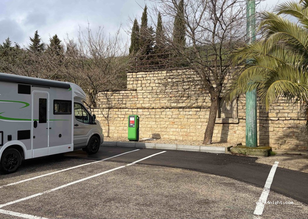 Der Platz ist an sich nicht schlecht, hat uns aber nicht gefallen. Strom und Wasser sind nicht vorhanden bzw. alles ist abgeschaltet. Bis etwa 3 Uhr nachts versammelt sich hier regelmäßig laute Jugend, es wird mit Motorrädern gefahren, geschrien und die Leute kommen sehr nah an die Wohnmobile heran.