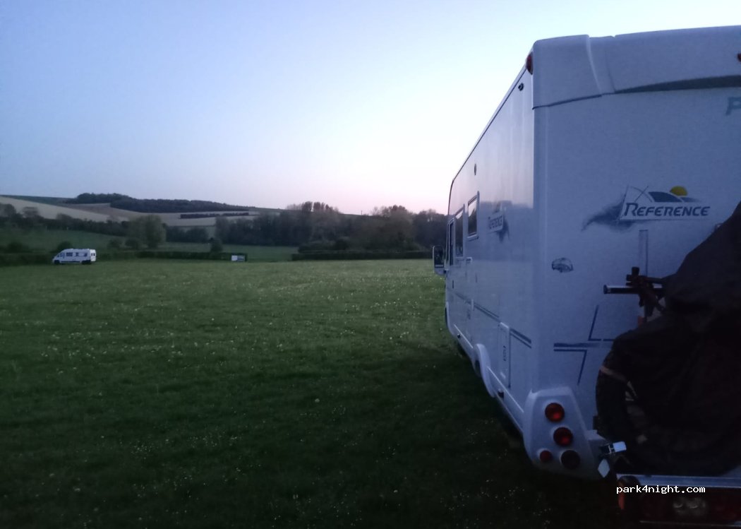 Un bel endroit pour passer une nuit au calme sur une pâture bien entrevue par son sympathique propriétaire. il passe le soir pour récupérer le prix du parking, 10€.