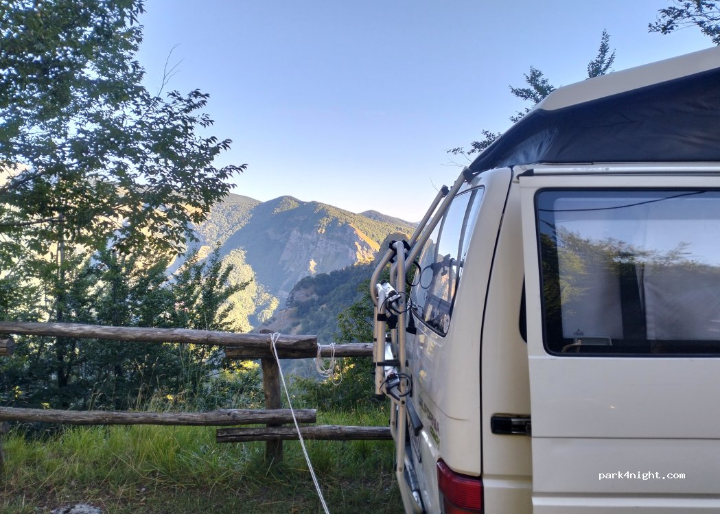 It's a really nice spot, extremely quiet at night, immersed in the woods and an excellent starting point for the Panie trekking. 3 euros for 24 hours in 2023. no services.
