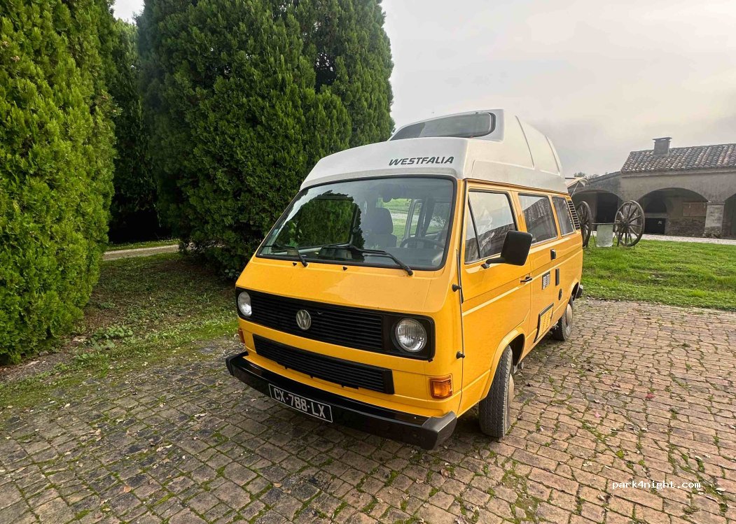 Amazing hidden place in the country side. Parking €5, shower €3, breakfast €8, pool usage €5. Too bad there is a wedding tonight, but no big deal for us of course!! Great for a one night pit stop and park the car in the shadows.