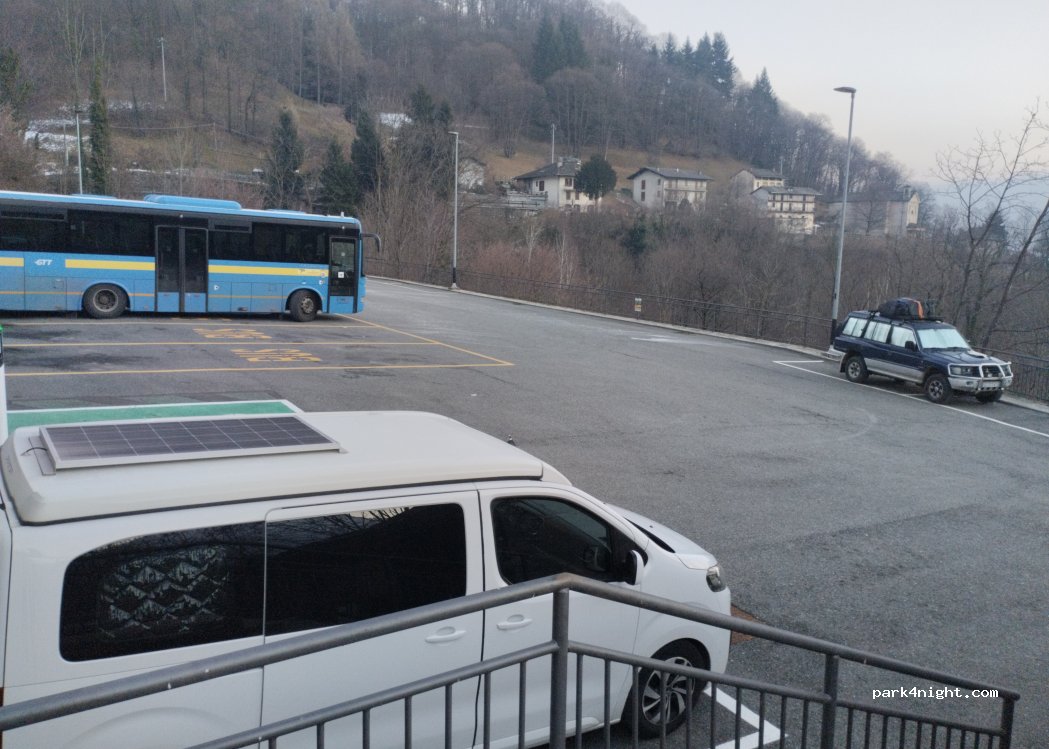 Parcheggio per autobus comodo per 1 o 2 notti, a due passi dal paese e da alcuni sentieri escursionistici della Valchiusella. Paese carino con fontane di acqua, bar e piccolo alimentari. Possibili rumori degli autobus in partenza la mattina presto e della campana del paese. Consigliato!