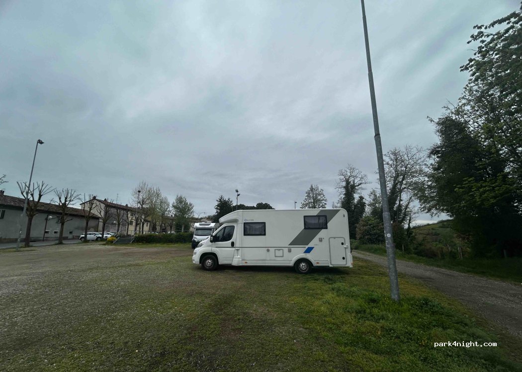 Parcheggio tranquillo a fianco di un bel bar, in piano e ombra. Poco sotto si scende ad un altro parcheggio su erba (campo) accessibile anche con grossi mezzi (utilizzabile quando ci sono sagre). Ottimo sito per visitare e pernottare. Grazie al municipio. No servizi.