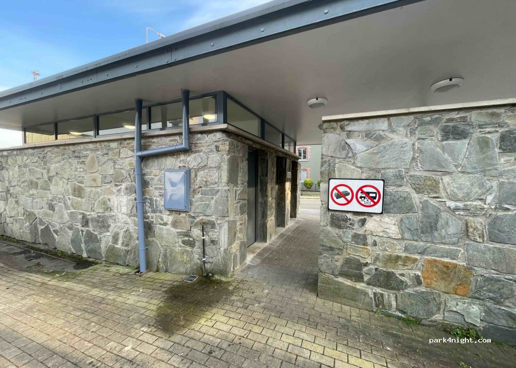Good access to water and toilets. We landed at 9.30 and the toilets were still open. Clean enough and open, which is the main thing. Washing machines access the road about 100 yards to the left "Aldi direction" small Spar with most things needed. Parked in the car park below the toilets in the middle of the town. Car park busy but had room for our 6m MH. Church bells chime which isn't great.