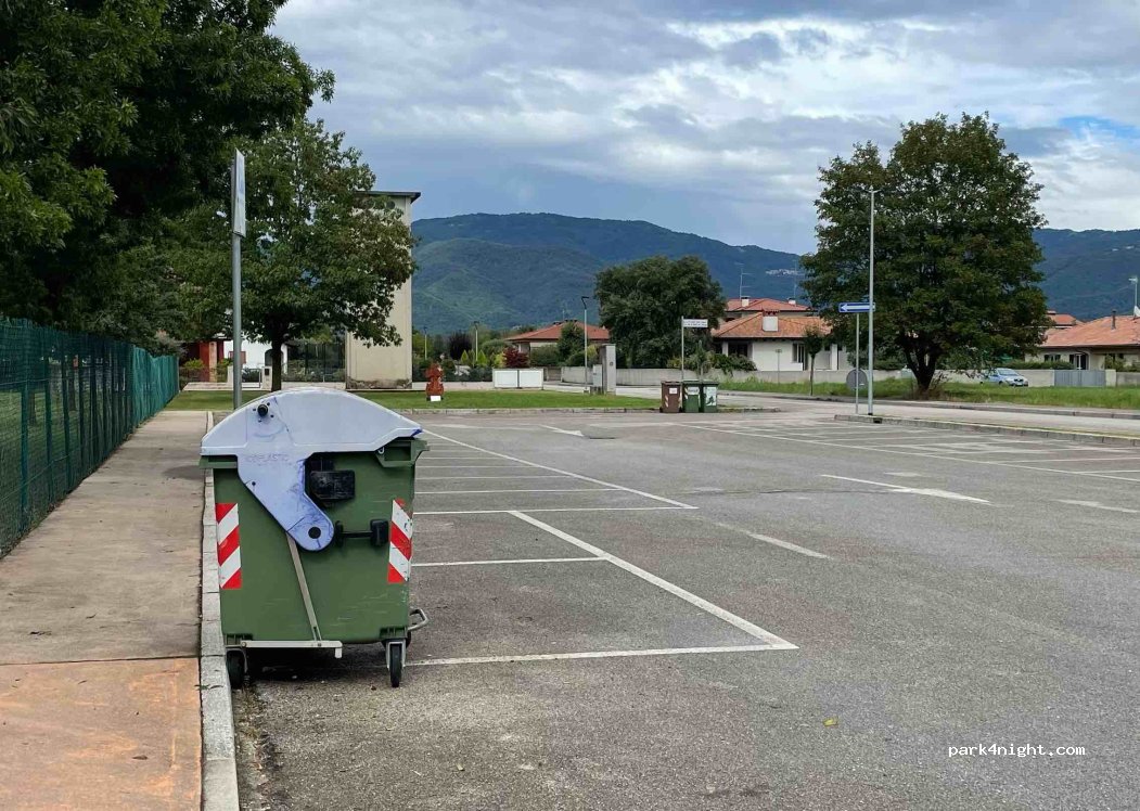 Parcheggio del parco giochi. Con tavoli per pic-nic, vicino alla casa del acqua.