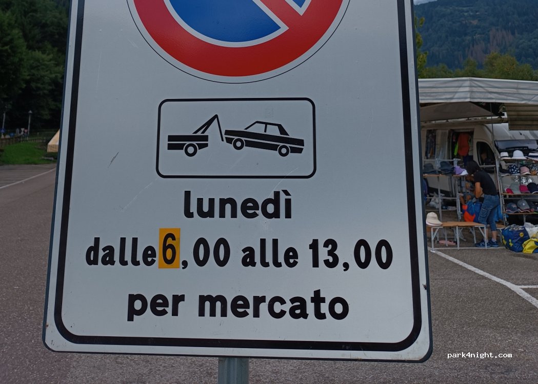 Il lunedì mattina il parcheggio è interdetto per la presenza del mercato. Nei giorni feriali durante il giorno (tra le 8.00 e le 19.00) può essere utilizzato per un massimo di 5 ore (disco orario). Per il resto è perfetto per passare la notte in tranquillità.