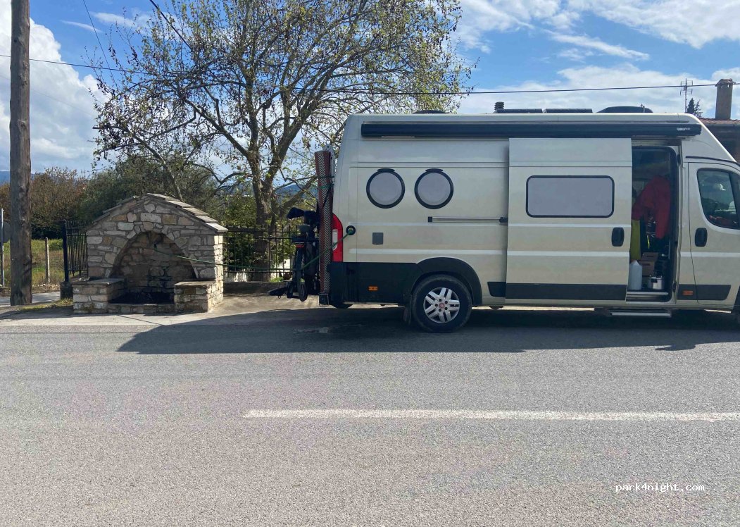 Gute Zu- und Wegfahrt. Nach der Fähre Thessaloniki folgen und nicht durch das Dorf führen lassen. Hahn mit Gewinde. Mittelmässiger Druck und Wassermenge. Es ist Leitungswasser und kein Quellwasser, aber trinkbar.