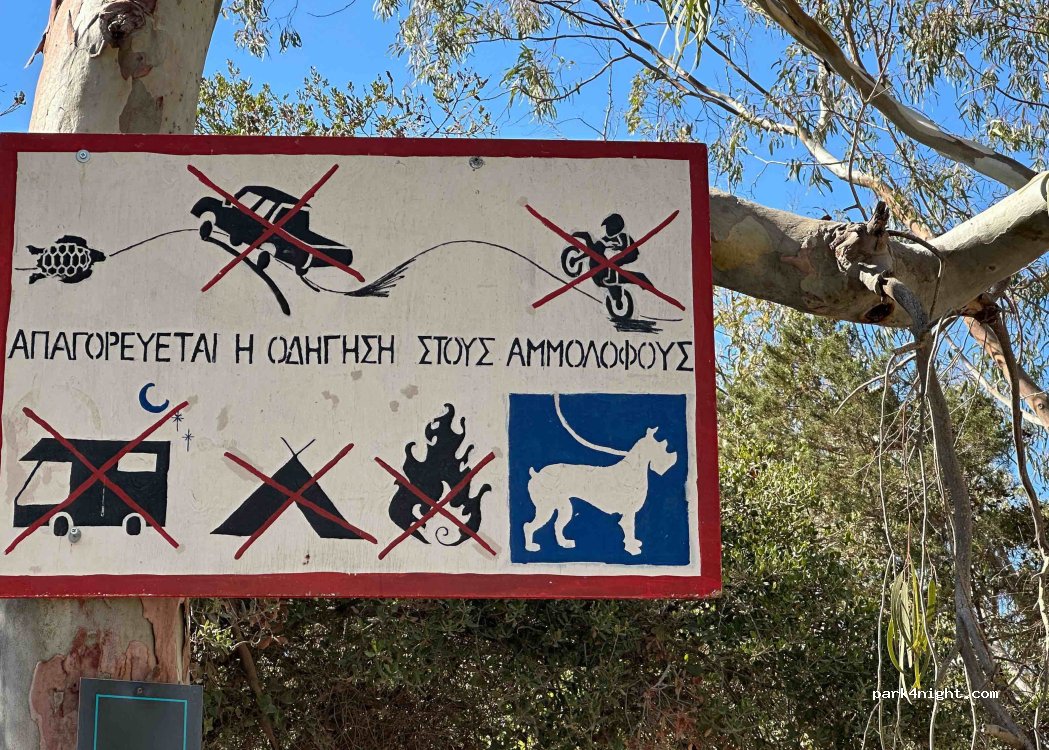 Parcheggio immerso nella natura a due passi dal mare, molto frequentato anche in bassa stagione. Forse anche per questo motivo è passata la polizia (di domenica) chiedendo ai vari presenti di andare via. C'è una pompa dell'acqua e bidoni della spazzatura, purtroppo pieni. Personalmente abbiamo trascorso due notti qui, molto tranquille, e una nel vicino campeggio Erodios.