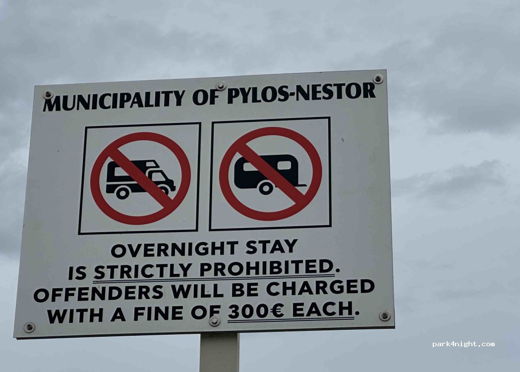 Realy great place. We park no far away from the beach bar- far enought to be away from petrol electric engine of the bar. Showers at the beach bar. We spend two nice nights there. We walk to the Old Navarino castle from that spot 45 min.