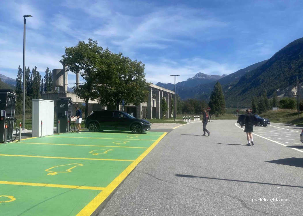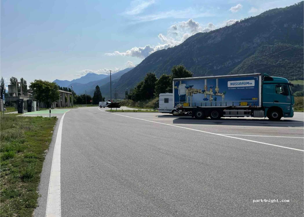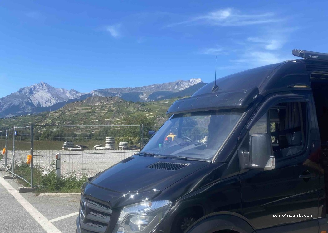 Great stop for an overnight stay, beautiful views, toilet facilities were well maintained on our stay and drinking water available, lovely walk along the river accessed here and can walk into sion through a turn style gate