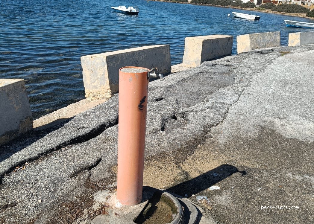 Acqua sempre disponibile scavalcando il piccolo spartitraffico (cosa che fanno regolarmente le auto) per la notte fuori stagione penso che ci si possa fermare anche se a pochi km c’è il comodo parcheggio gratuito oro bianco