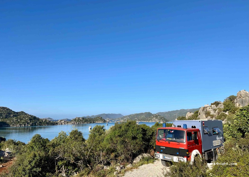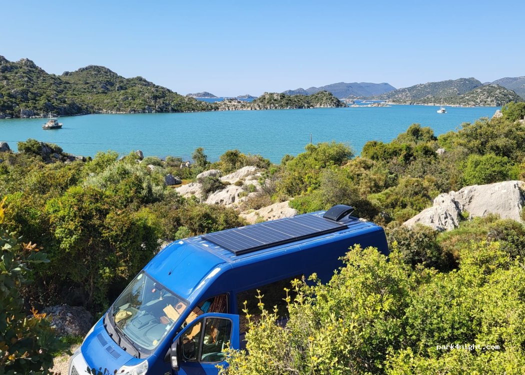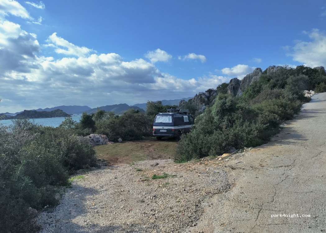 Superbe spot. Effectivement un peu difficile de descendre de la route avec un gros camping-car mais ça le fait. A 10min du château de Simena. point d'eau en bas au bord de la route