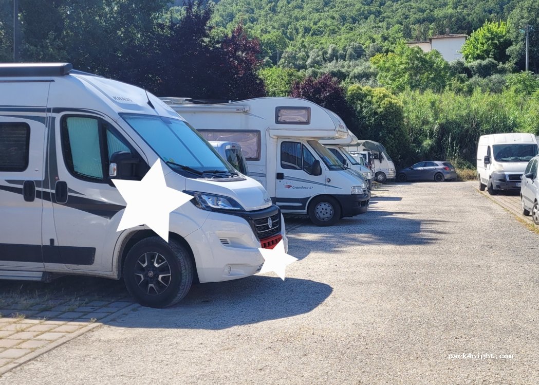 parking idéal pour visiter la ville pratique d'accès si on veut profiter de la soirée à Orvieto. nous y avons passer une nuit calme plus de bruit sur le matin mais très correct