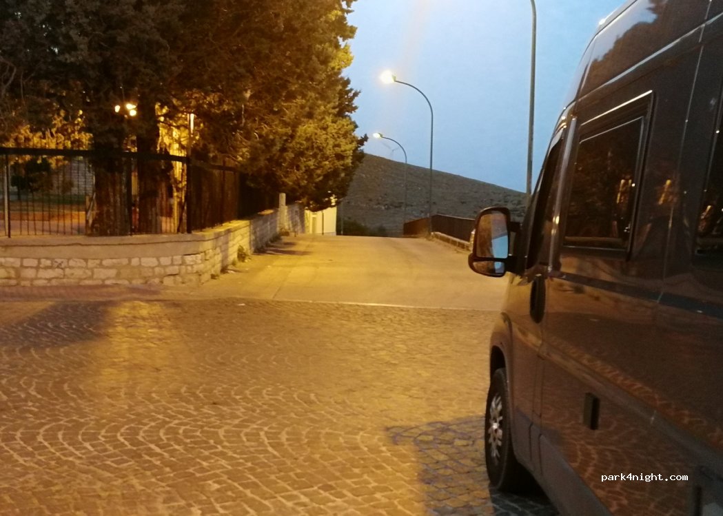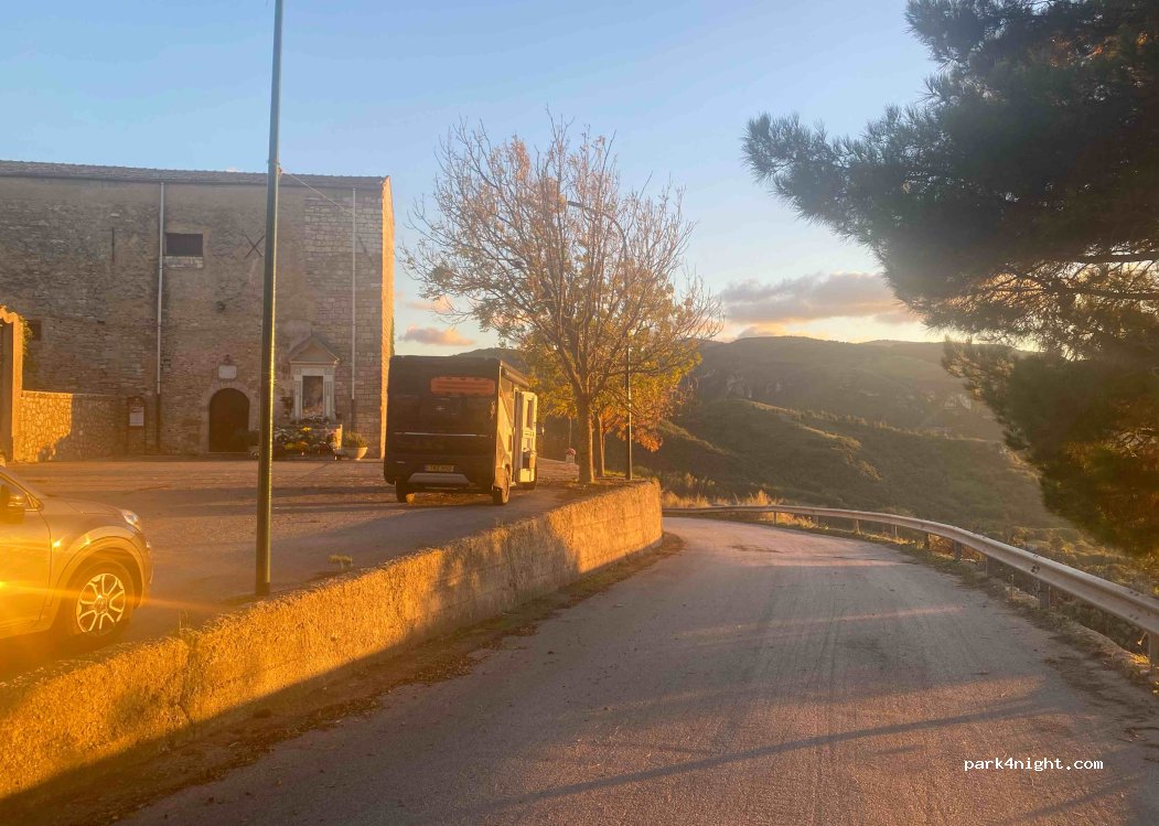 Only parking lot, large vehicles are no problem. The footpath to Prizzi starts right at the cemetery. To the right under the pine trees would be a shaded parking lot for two vehicles.