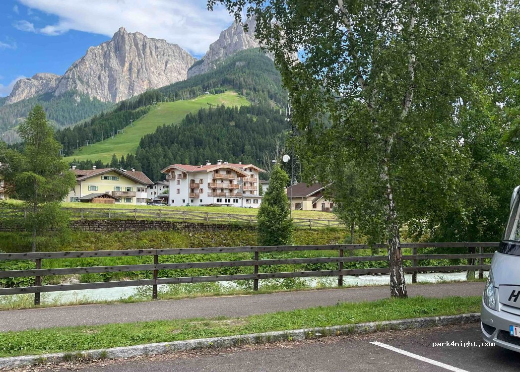 Ottimo. Abbiamo trascorso una notte pochi giorni fa prima di entrare al camping Vidor a Pozza di Fassa. Gratuito e con posti specifici x i camper. Bellissimo paesaggio, affianco al fiume.
