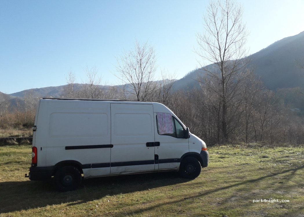 Spot su una macchia d'erba ai margini di un sentiero pedonale, non lontano dal fiume. Abbiamo trascorso due notti molto tranquille e molto piacevoli. Eravamo soli ma ci deve essere spazio per 2-3 camper