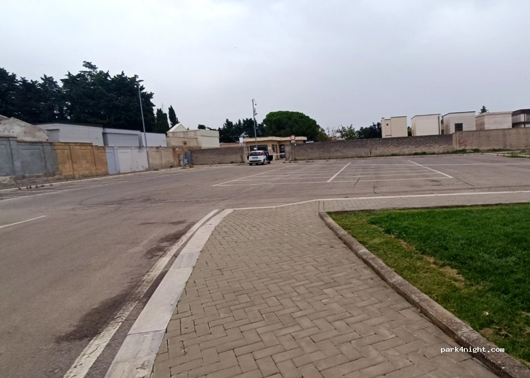 Parcheggio in piano. Ci sono alcuni cestini. Si trova su una strada a abbastanza trafficata (non abbiamo dormito lì infatti) è però funzionale alla visita della città. Il parcheggio del cimitero si riempie il mattino e si svuota verso pranzo. Noi abbiamo parcheggiato sulla strada (i parcheggi era più larghi). Consiglio la panetteria Pan Zero a poca distanza. Fanno un ottimo pane di Altamura.