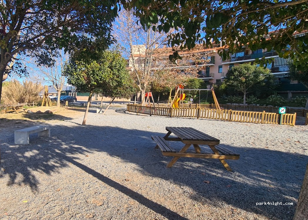 P6 La Peça. Ample parking for vans / AC capacity for 25 vehicles. 5 minutes from the center of Ullastrell on foot, where you can find small supermarkets, pharmacy and bars. In the parking lot there is a park with a zip line for children, a drinking water fountain and rubbish bins. unbeatable views of Montserrat. paved and flat place. Area with video surveillance. recommended.