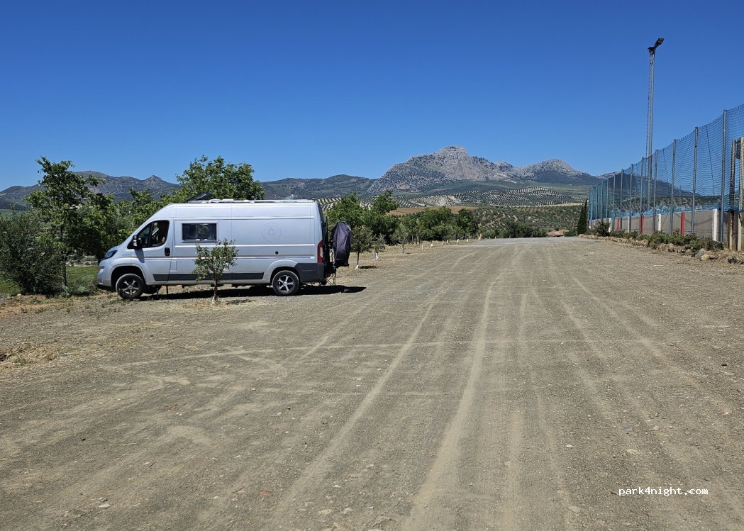 Zona muy tranquila, al lado del campo de fútbol. Estacionamiento en firme sin desnivel. Muy recomendable para una noche de paso.