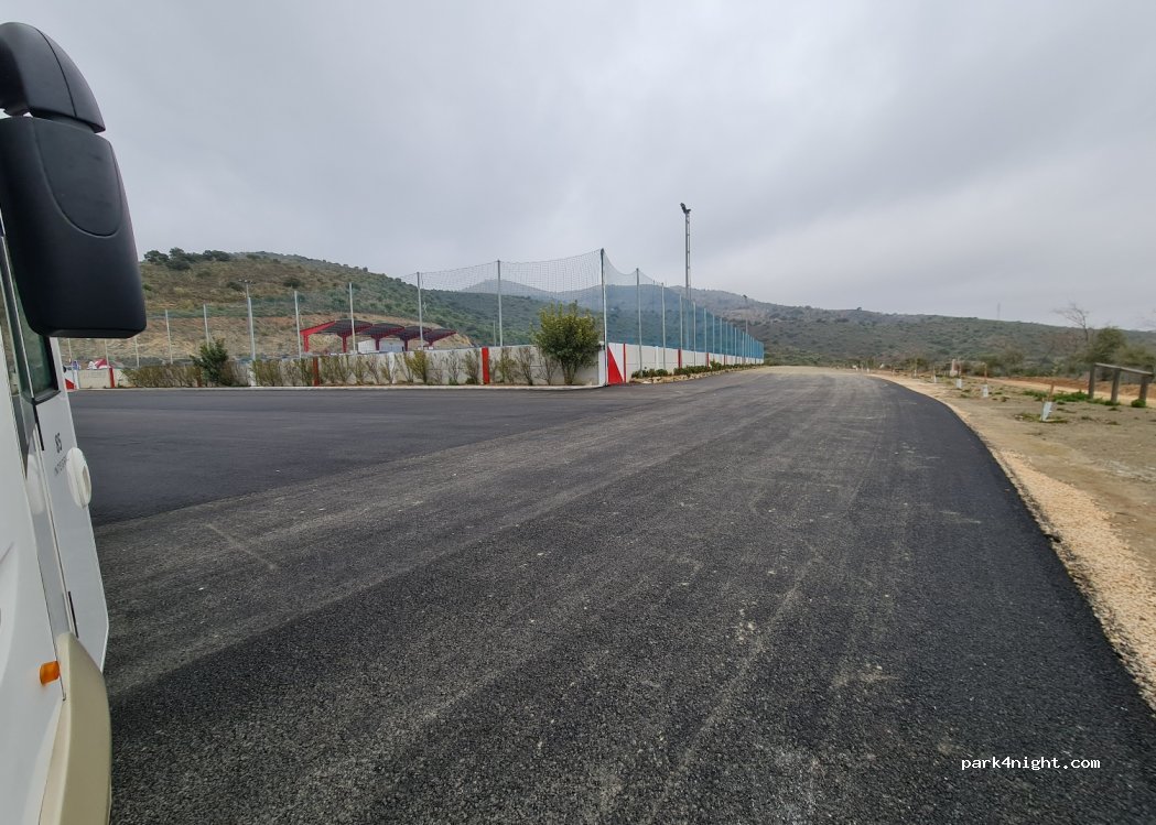 A good flat parking spot. No services. Just do not try to access from the main town (as it's via a small dirt track). That takes you into the urbanisation, then follow signs for the Football stadium. training was happening when we visited but still a large parking area with lots of space.