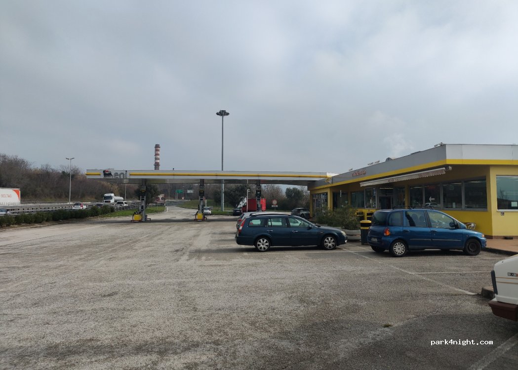 Station-service Eni dans la rue principale avec alimentation et élimination pour mobil-homes. Pas de douches.