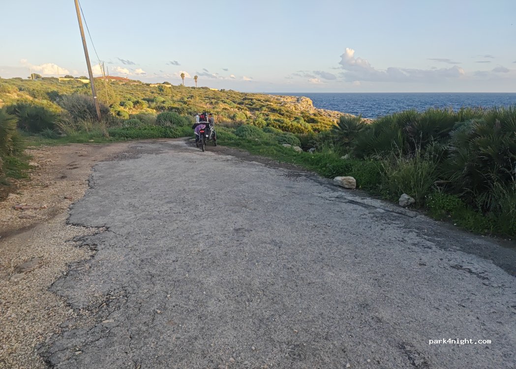 Kleine Parkbucht am Ende der Straße. Man könnte auch den Feldweg 50m weit mit 4x4 rein fahren. Im Februar sehr ruhig. Platz für bis 7m. Ausbreiten könnte man sich dann 50m weiter. 15min gehen zum kleinen Leuchtturm oder 20min Fahrt nach Siracusa