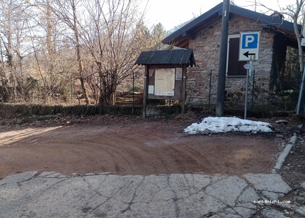 Estacionamiento sin pavimentar en terreno llano, camino de acceso estrecho. Apto para pequeñas caravanas o furgonetas. Punto de partida del camino que lleva a la cima de Poncione. A unos pasos encontrará un excelente restaurante.