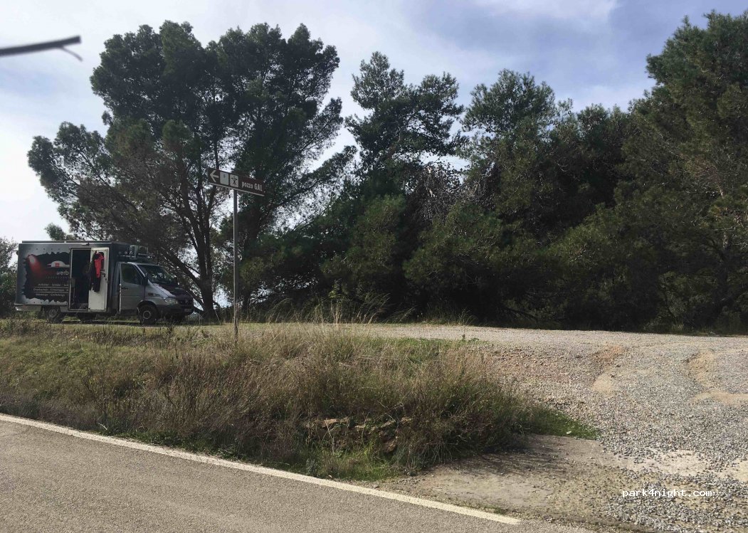 Zona sterrata in prossimità di una strada. Buono per una notte. Spazio per una manciata di camper/furgoni.
