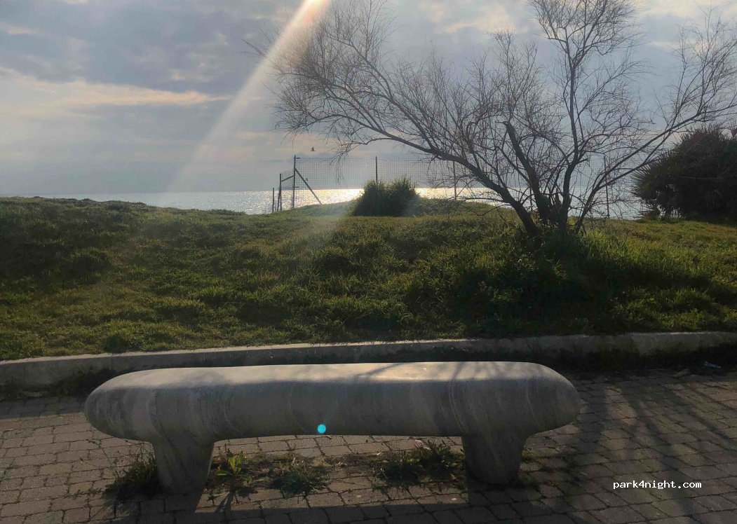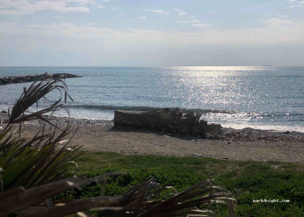 A relatively quiet street with plenty of parking, right on the beach. Small stone benches to sit on, beautiful sea views. I don't know if you can stand overnight.