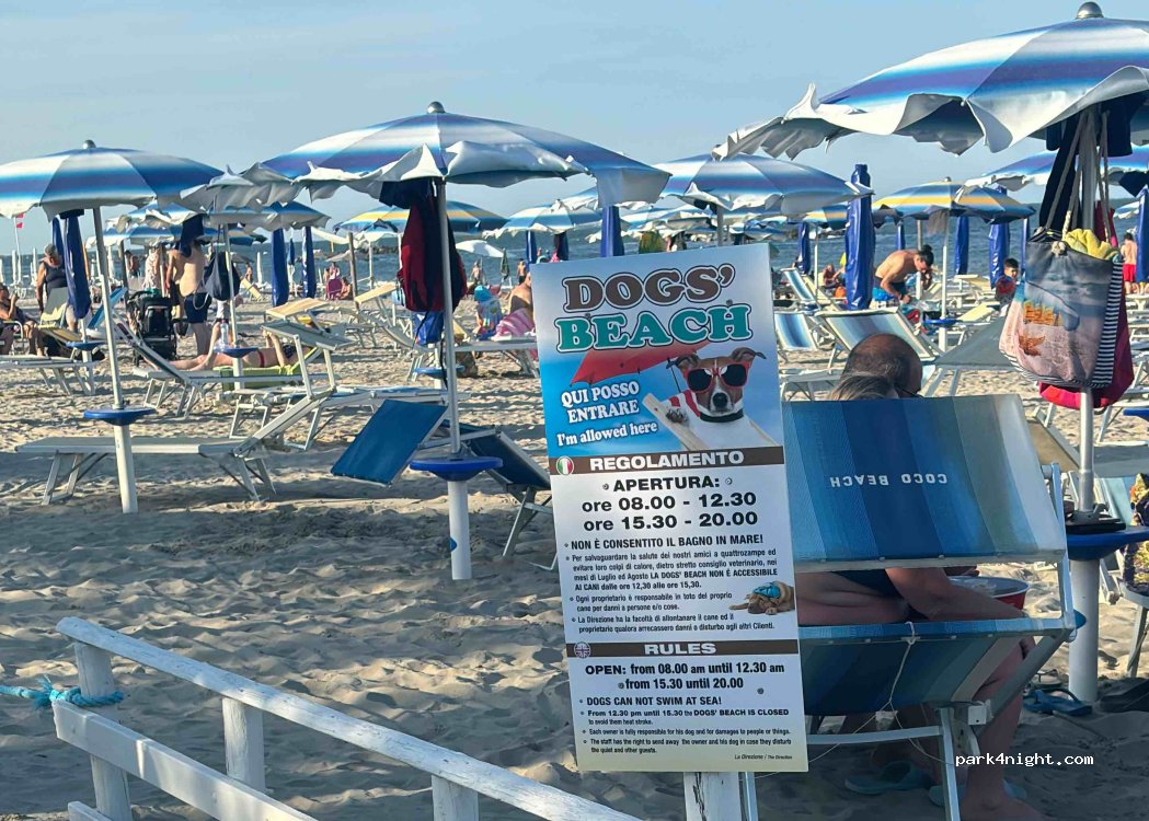30 euro a notte in area sosta molto ombreggiata con corrente ,docce calde gratuite ,carico scarico ampio e fatto davvero bene x le manovre. Direttamente sul mare ! Servizi igienici con carta e sapone puliti più volte al giorno, ristorante/pizzeria, animazione da metà giugno ,spiaggia libera,privata e Dogs' beach ! Ottima area cani esterna ,bellissima e ben curata . Tutti super gentili ! Bravi !