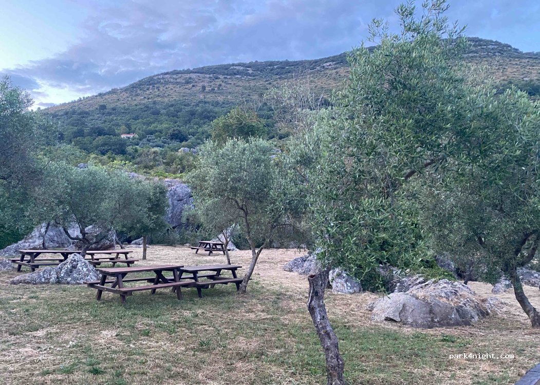 Magnifique endroit situé sur une ancienne carrière de marbre réaménagée en vaste aire de pique-nique au milieu des oliviers et des vignes. Stationnement sur le parking. Pas de poubelles donc veillez à tout ramasser. Seul au monde en semaine mais sans doute très fréquenté le week-end.