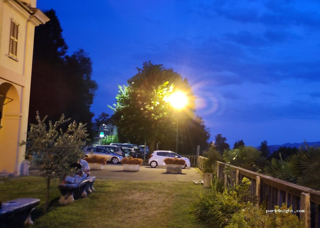 une place derrière le sanctuaire en bord de route mais calme la nuit. jolie vue sur le lac. WC. petite route pour y accéder, ok pour un van. à 5mn d'orta san giulio