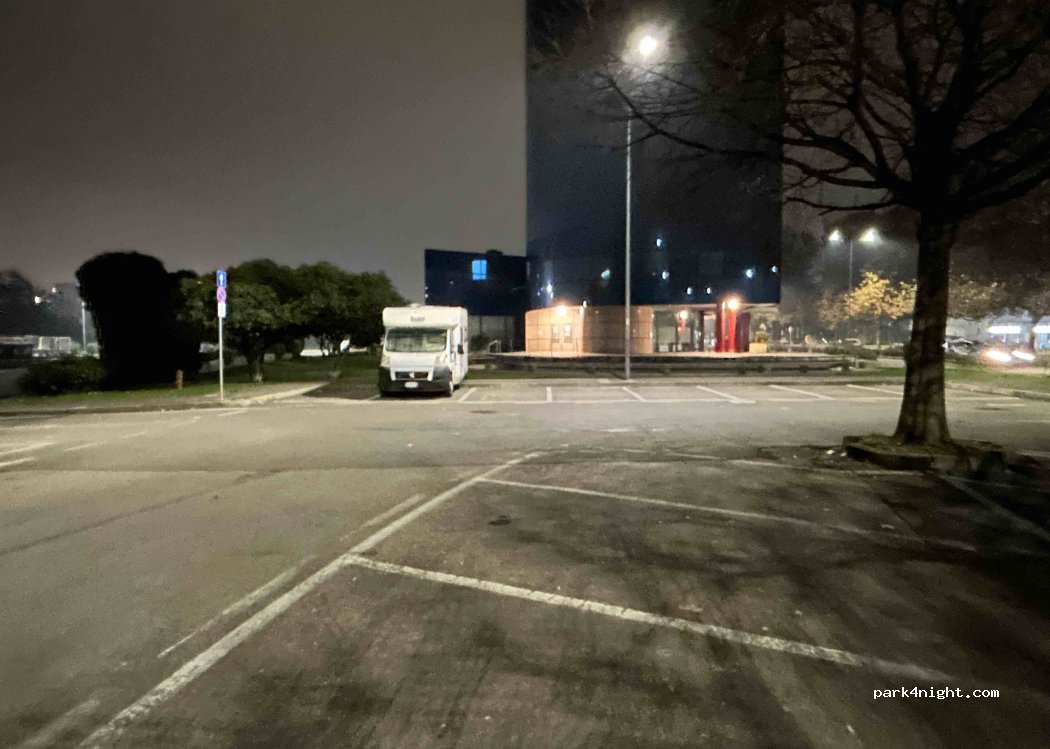 A great spot nearby Brescia center. A large flat parking nearby some office buildings. The places marked with white line are free to park on. Those with blue lines are paid parking lots. We parked here just after New Year and the lot was practically empty. Felt safe.