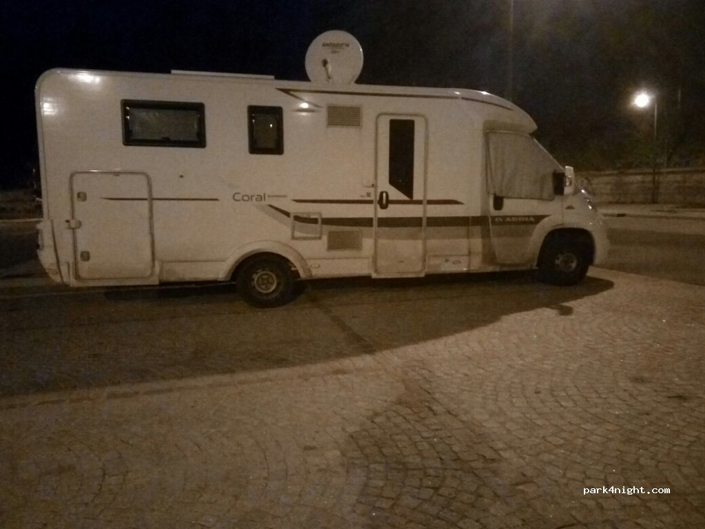 Halte pratique (non loin de l'autoroute) et sympathique (vue, calme) entre Ancone (ferry) et notre destination ardéchoise. Quelques jeunes effectivement en soirée qui discutent, rient un peu fort, vivent tout simplement. Du coup, il peut être préférable de se garer à l’extrémité droite du parking quand on regarde le parc, les voitures stationnant plutôt à gauche.