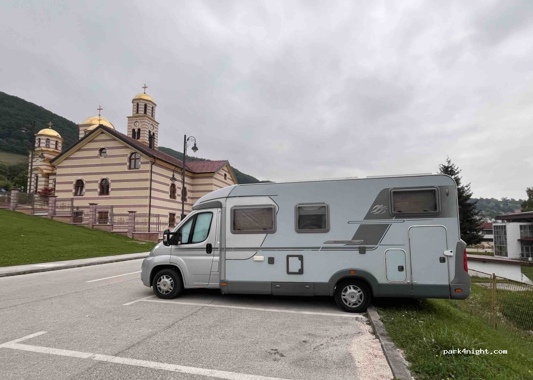 Parkplatz direkt neben der wunderschönen Kirche - ein must see!! Kein Service, aber tagsüber gut.