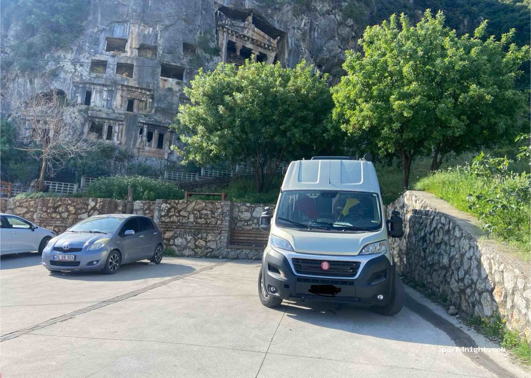 Free parking at the foot of the Amyntas Rock Tombs monument, fairly easy to access (except for large vehicles, heavy goods vehicles, to see). Superb alternative to avoid the paid parking lot in the city center.
