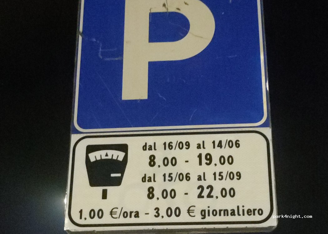 Parcheggio a pagamento 5€ tariffa per camper. Stalli in discesa ed abbastanza corti
