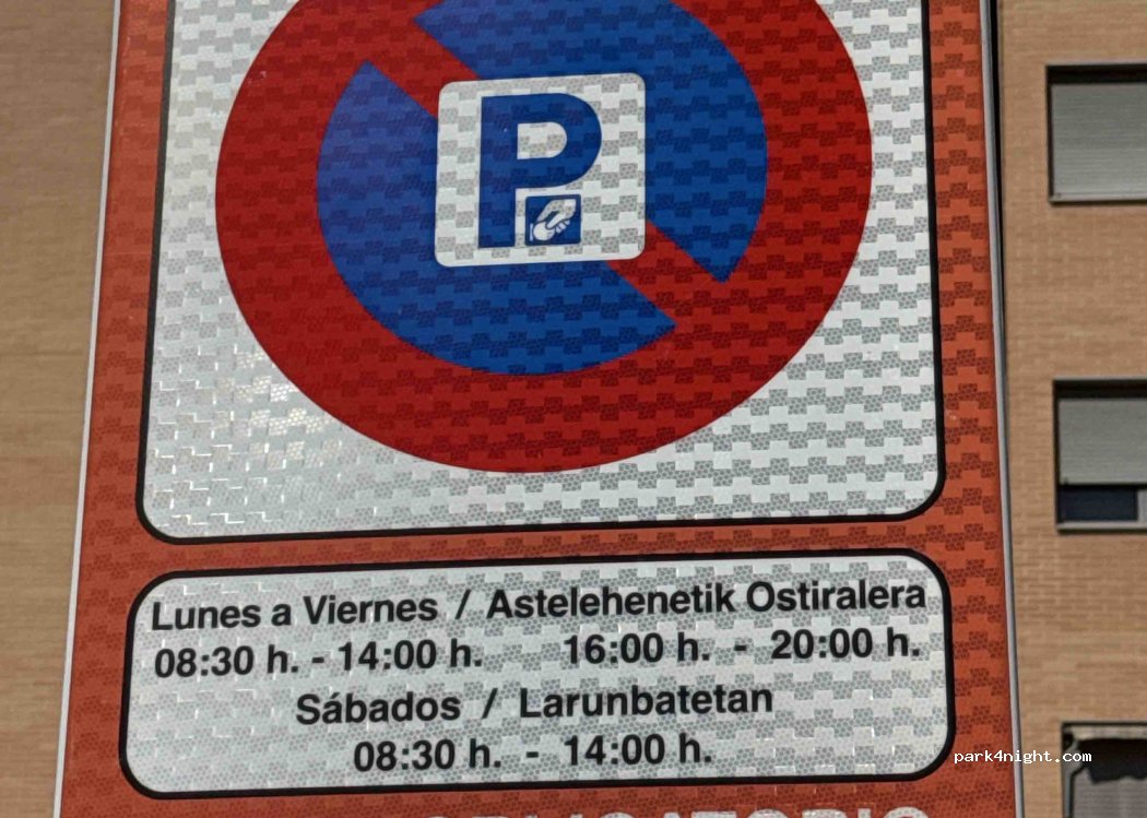 Zona de aparcamiento regulado de pago. Se puede aparcar, pero la normativa municipal no permite pernoctar en vehículos salvo en áreas designadas. Hay varias en Pamplona y municipios anejos, con fácil acceso al centro. Si te quedas por la noche te arriesgas a que te hagan moverte, o a una multa. Esta regulación aplica a todo el municipio de Pamplona.