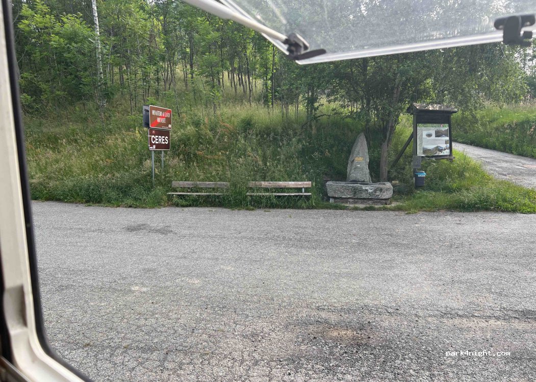 Am Passo della Croce, großer flacher Platz, super ruhig und friedlich mitten im Wald, in sehr aussichtsreicher Lage, frischer Bergwasserbrunnen. Idealer Ort für einen Tages- und Nachtstopp. Zwei Zufahrtsstraßen: von Chiaves aus auch im Winter problemlos möglich. Achtung: Schmale und steile Straße, die im Winter von Cernesio-Ceres gesperrt ist.