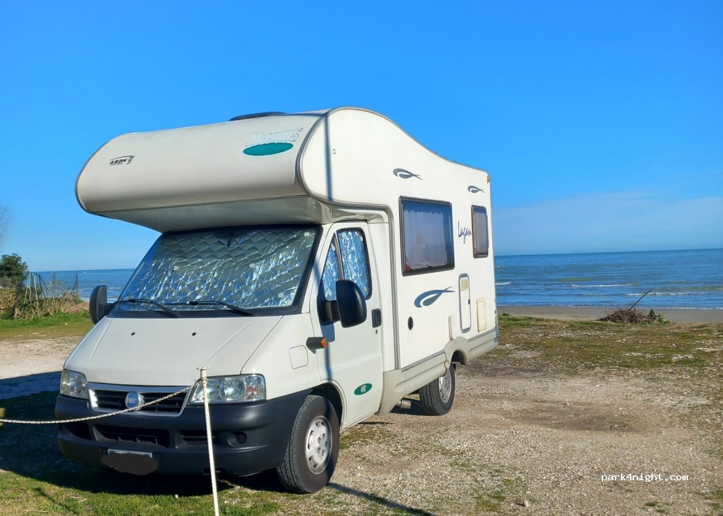Luogo magnifico, stazionato piu' notti senza problemi. Consiglio d'arrivare dopo le 18 o alla mattina presto, meglio se non nel weekend. Sottopasso di via del sottopasso alto 3,90 metri. Fronte mare trasparente e spiaggia libera pulita dal comune. Doccia fredda da spiaggia sulla strada; possibilità di riempimento taniche. Sconsiglio il chioschetto/bar che vende prodotti da discount (Eurospin).