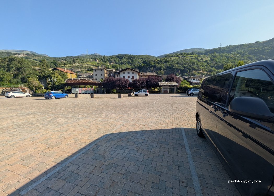 Parcheggio gratuito molto comodo e soprattutto bagni molto puliti e sempre aperti 24h/24h, (luce con sensore di movimento che dura poco) . Qualche indicazione sbagliata del navigatore nell'ultimo tratto causa lavori in corsi. La nostra salvezza per una notte di riposo lungo il viaggio per Aosta