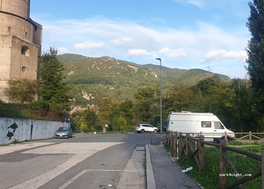 Posto tranquillissimo, consigliato per visitare Subiaco. Lo stallo di fianco al posto per disabili permette di parcheggiare anche a un mezzo come il nostro di 7.50 m. A sera c'è via vai di giovani e persone col cane, qualche giovane con auto sgomma un po', ma è stata tranquilla anche la notte di sabato. Per arrivare alla rocca sono quasi 150 m. di dislivello, soprattutto scale.