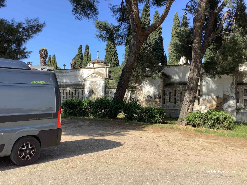Parking, next to the cemetery, on a level area on the outskirts of Torremaggiore. There is a well-stocked supermarket in the village. We spent a quiet night there. Please note: Only suitable for small motorhomes.
