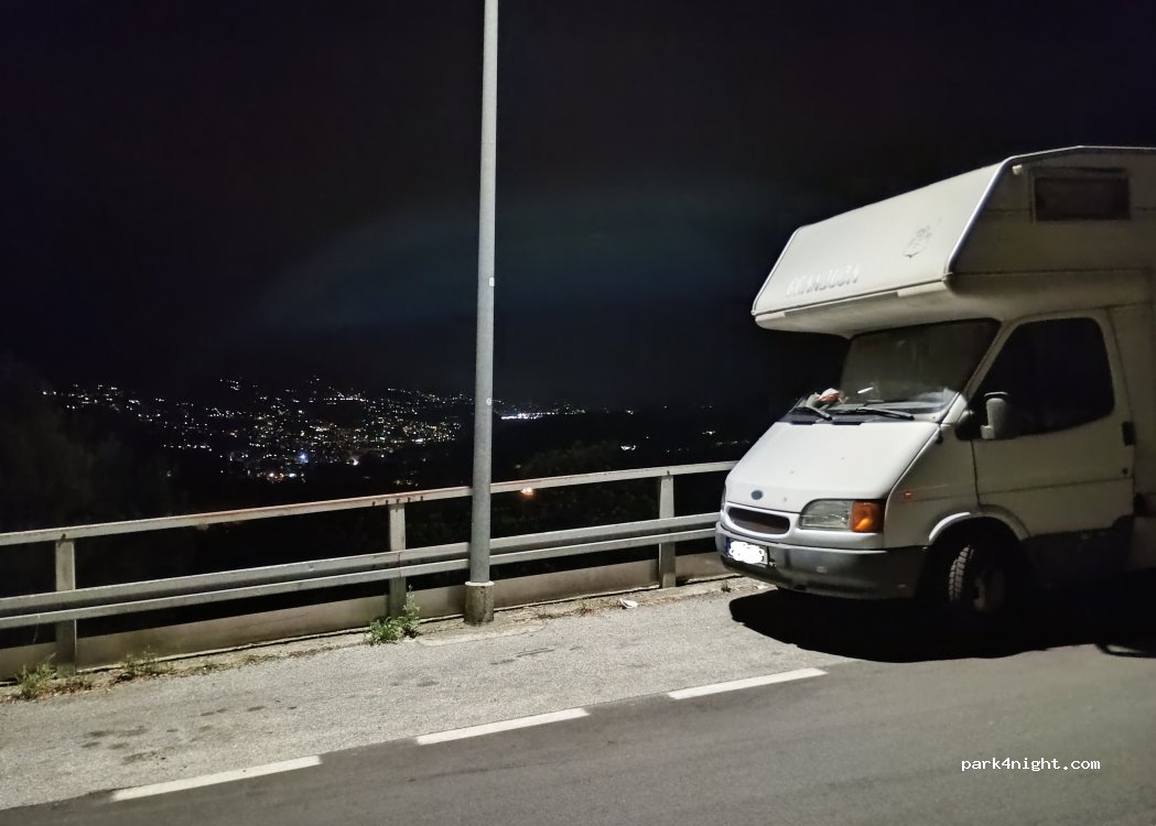 Petit parking accessible en bord de route et sans interdiction (rare!), offrant un joli point de vue sur Rapallo au lever du soleil. Pas trop de passage même s’il ne faut pas rêver, et début de saison… en bonus, les toilettes publiques de l’église accessibles juste au dessus par un escalier, avec un tuyau permettant une douche (froide!) bienvenue.
