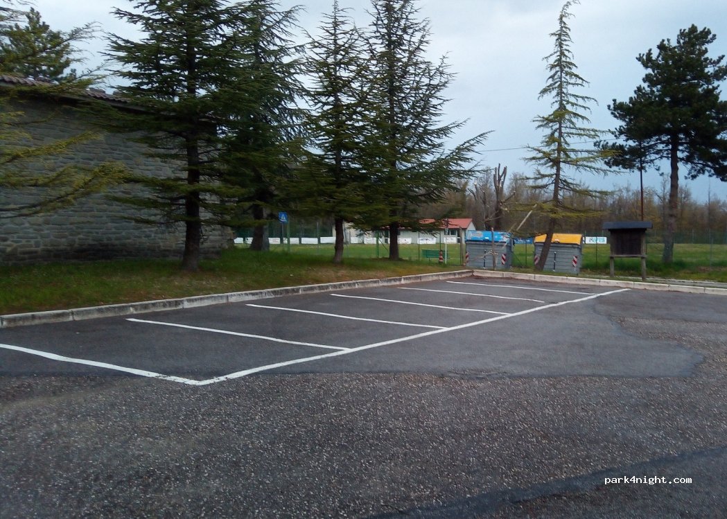 posto tranquillo. parzialmente ombreggiato. a pochi passi trattoria. buon posto per sosta anche notturna. nessun servizio é il parcheggio del cimitero. alcuni stalli sono in piano.
