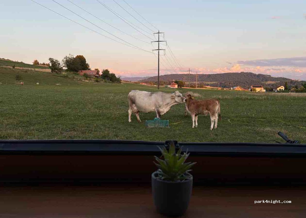 On a passé 2 nuits - super accueil de Martin. On n’avait pas réservé mais mieux vaut le faire au tel. Possibilité d’avoir l’électricité. Proche de Berne (on y est allé en tramway station à 10min à pied). Endroit très calme. Je recommande vivement.