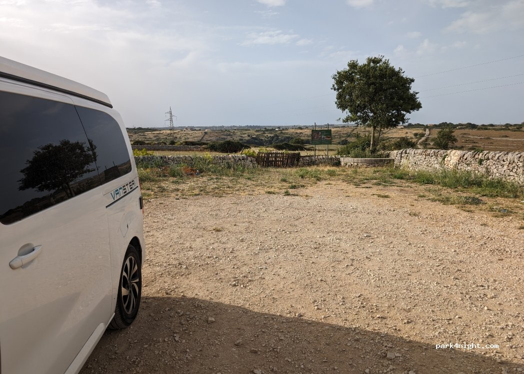 Parking for the start of the walk to the grotta delle trabacche. quite narrow but really very uncrowded, quiet night and not far from Ragusa. Some waste.