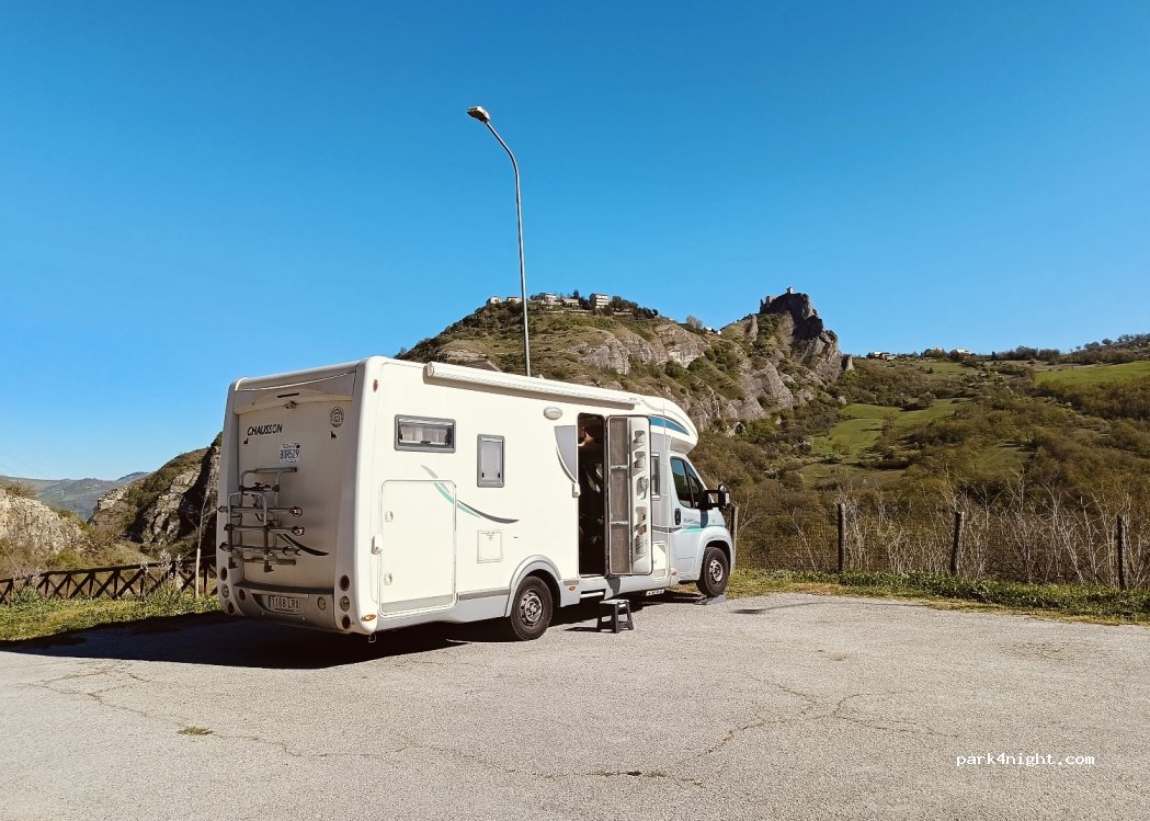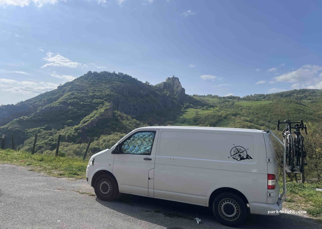 Parking dans un endroit plus que calme (mars 2024) avec une jolie vue. 3 passages de voitures en tout de 19h a 15h, dont 2 fois les carabiniers qui nous ont salué. Cela nous a convenu pour passer un moment OFF.