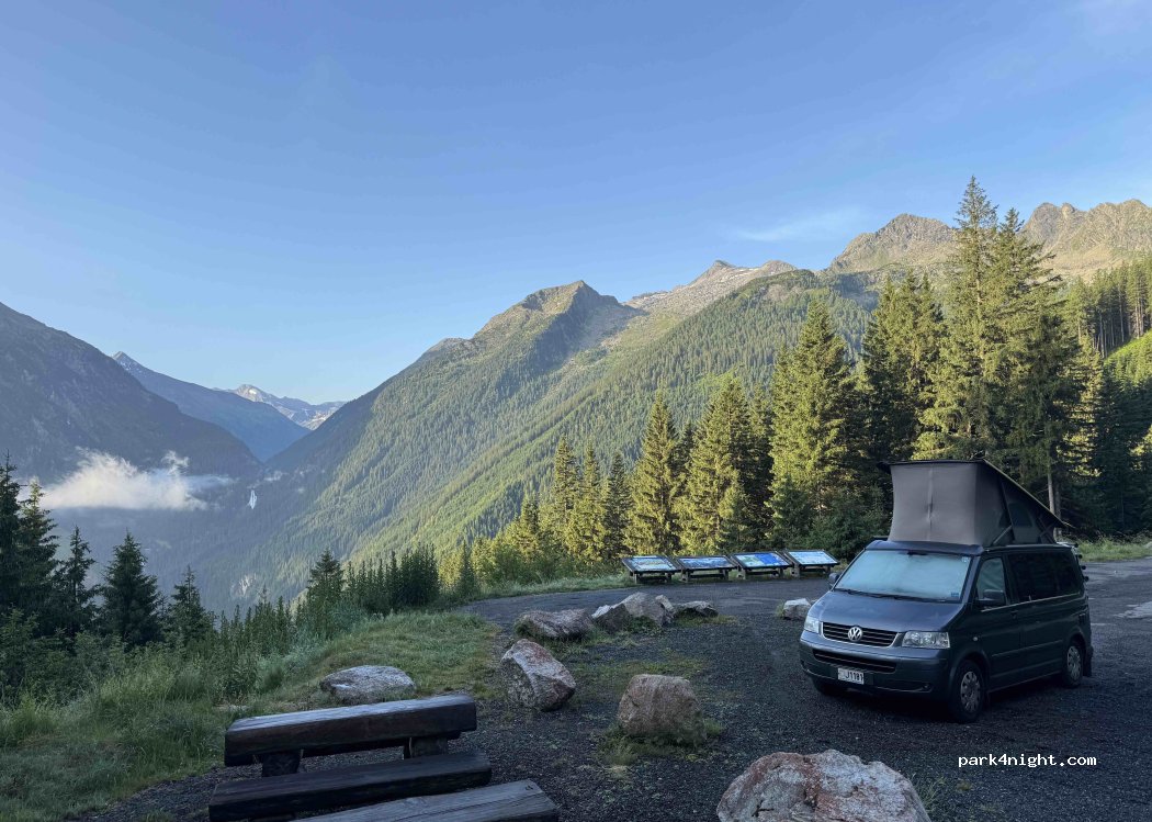 Lay-by on the main road from/to the Krimml waterfalls. Nice for a quick stop but don’t think it’s a good overnight. Much better spots nearby.