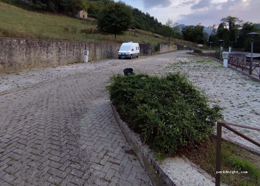 Bel emplacement, juste au-dessus du parc aquatique de Marradi.Paiement en cours par carte, nuitée et CS offertes.Pas bien entretenu en été 2021. Park4night l'indique à 250 mètres d'ici. Les deux premières photos sont de cette zone que j'ai décrite, les deux autres du parking sans services à environ 250 mètres. Ceci n'est pas un doublon
