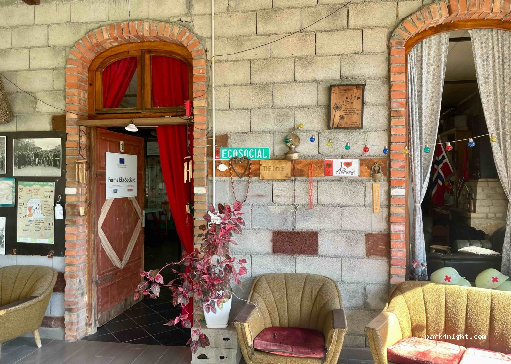 Maravilloso lugar para descansar. Se trata de una granja con proyectos sociales en donde Castriot nos hizo sentir como en casa. Hay habitaciones y también espacio para las furgonetas (aunque no mucho y no está muy nivelado el suelo). Hay dos perros que ladraron por la noche pero son muy buenos. Nos invitaron a un chupito de una bebida regional. Hay ducha de agua caliente y baño. Muy a gusto